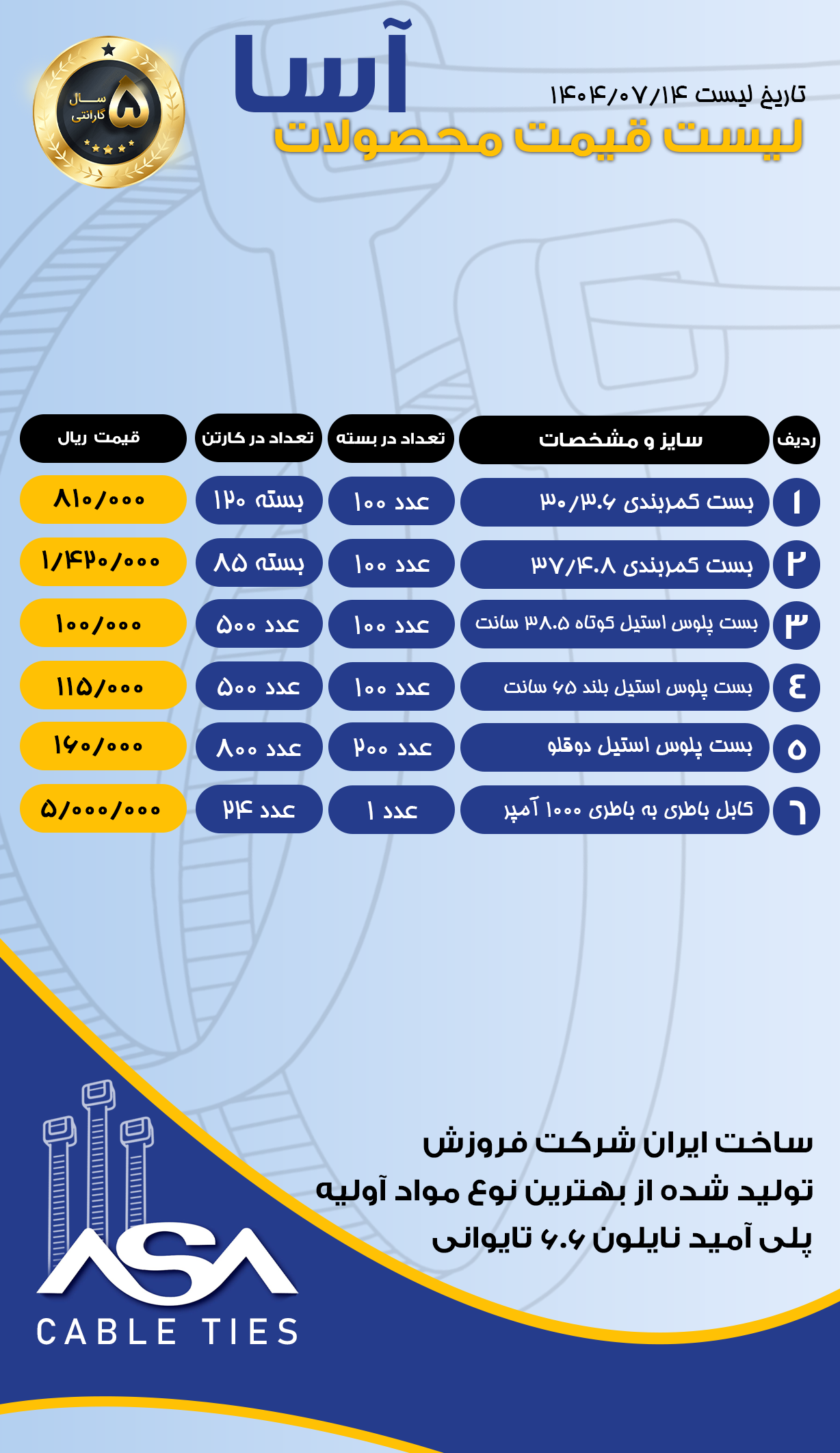 📒 لیست قیمت بست کمربندی آسا ساخت کشور ایران✅ اپدیت شده تاریخ روز: ۱۴۰۴/۰7/14